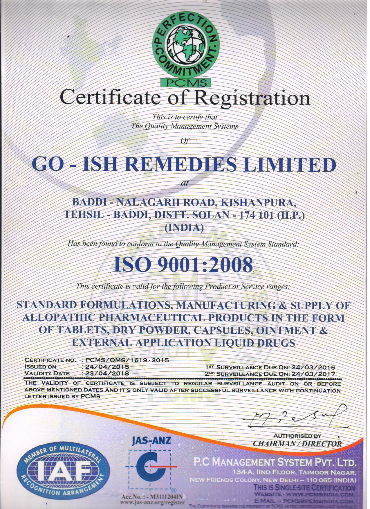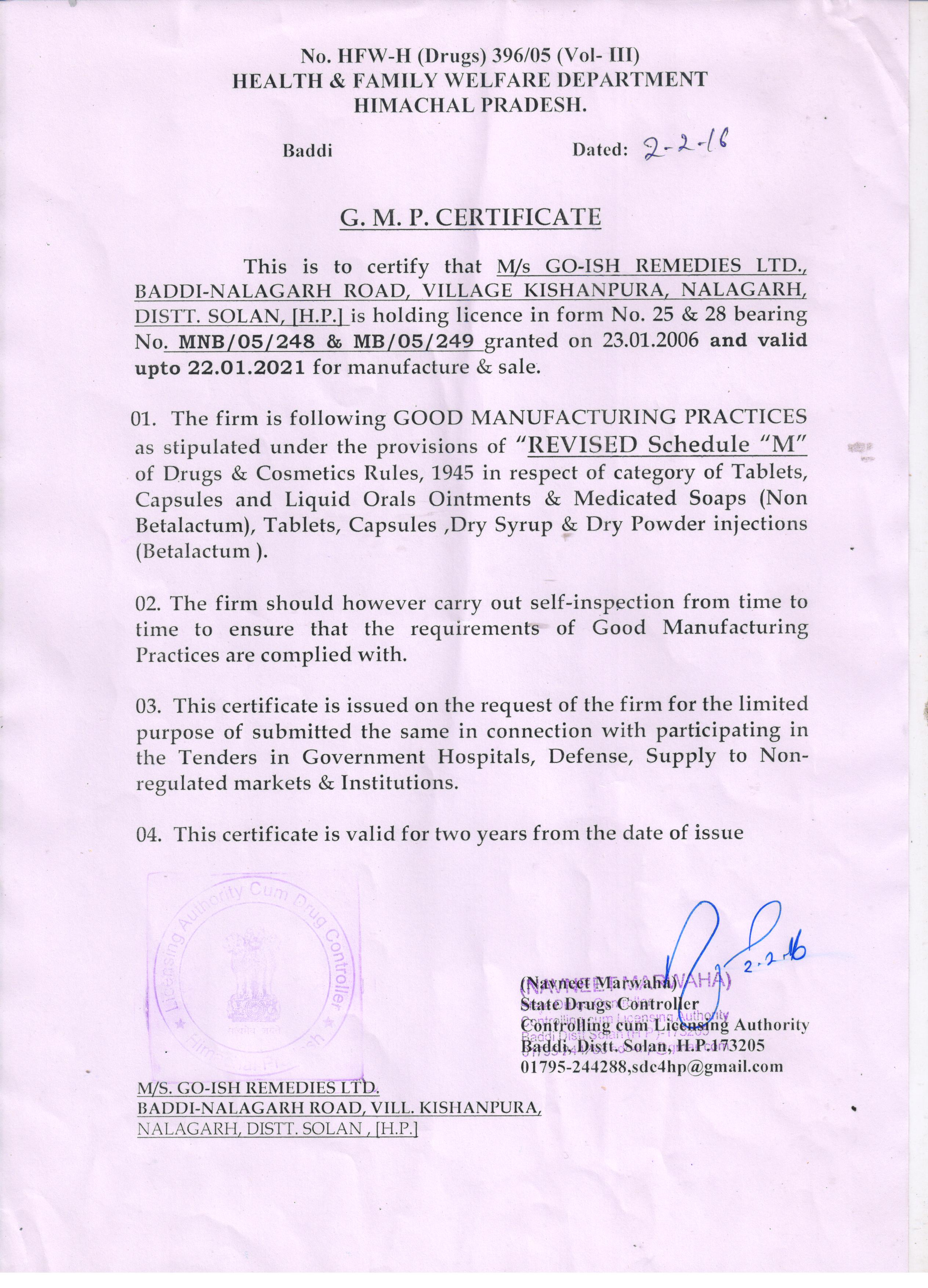 Go–Ish Remedies Ltd. was incorporated under company’s act 1956 on date 29th Jan.2003 company No. 02423/GU2003PLC4191 & commencement of business was done on 21 Feb.2003.